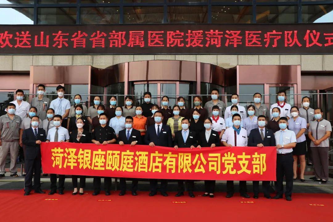 7月24日,新冠肺炎疫情突袭菏泽,菏泽银座颐庭华美达酒店积极投身疫情防控阻击战。7月30日至8月24日,酒店实行封控闭环管理,接待197名支援菏泽方舱医院的省部属六家医院的医护人员。酒店全体员工同心协力,克服困难,用心保障,得到政府专班和医护人员的一致好评。