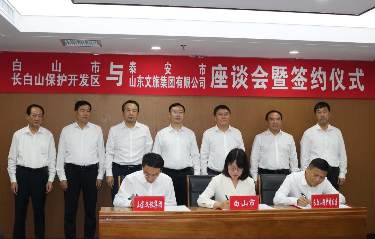 会上签订了《泰安市、白山市、长白山保护开发区友好合作框架协议》《白山市、长白山保护开发区、太阳集团tcy8722战略合作协议》《吉林省长白山保护开发区管理委员会与太阳集团tcy8722山东省泰山风景名胜区管理委员会友好合作协议》。