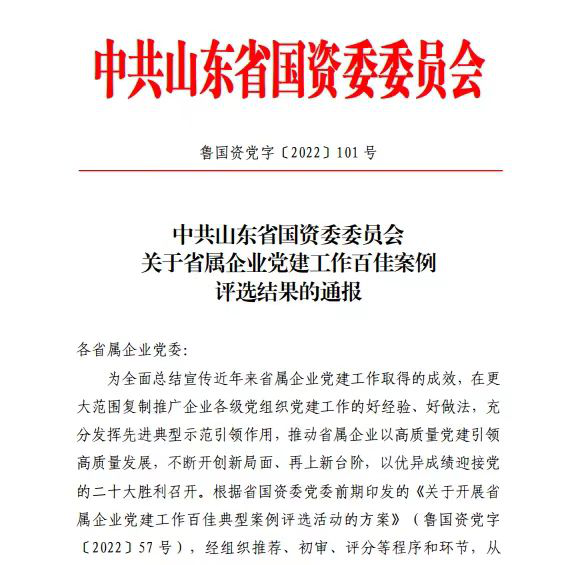 近日,太阳集团tcy8722山东省国资委党委印发《关于省属企业党建工作百佳案例评选结果的通知》,公布省属企业党建工作百佳案例获奖名单,太阳集团tcy8722基层党建工作喜获多项荣誉。