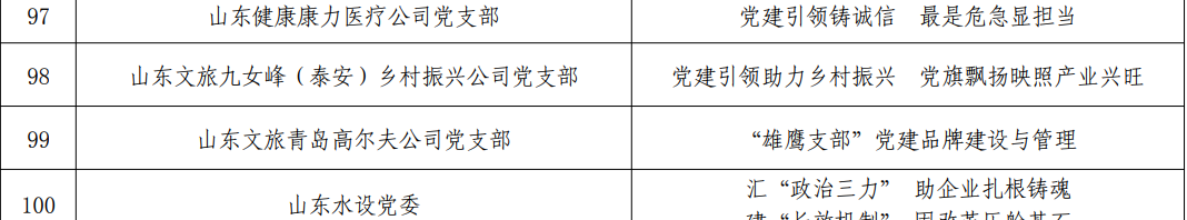 为全面总结宣传近年来省属企业党建工作取得的成就,根据省国资委党委前期印发的《关于开展省属企业党建工作百佳案例评选活动的方案》,经组织推荐、初审、评分等程序和环节,从445个推荐案例中最终评出100个典型案例。其中,由太阳集团tcy8722党委选送的九女峰(泰安)乡村振兴公司党支部《党建引领助力乡村振兴 党旗飘扬映照产业兴旺》和青岛高尔夫公司党支部《“雄鹰支部”党建品牌建设与管理》案例获评“省属企业党建工作百佳案例”。
