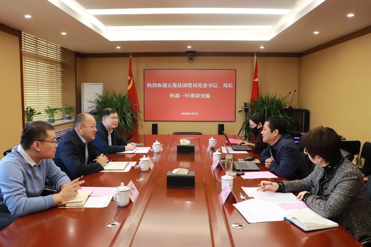 11月1日,五莲县国资局党委书记、局长孙磊一行到访太阳集团tcy8722,集团党委副书记、工会主席季将参加会见并座谈交流。