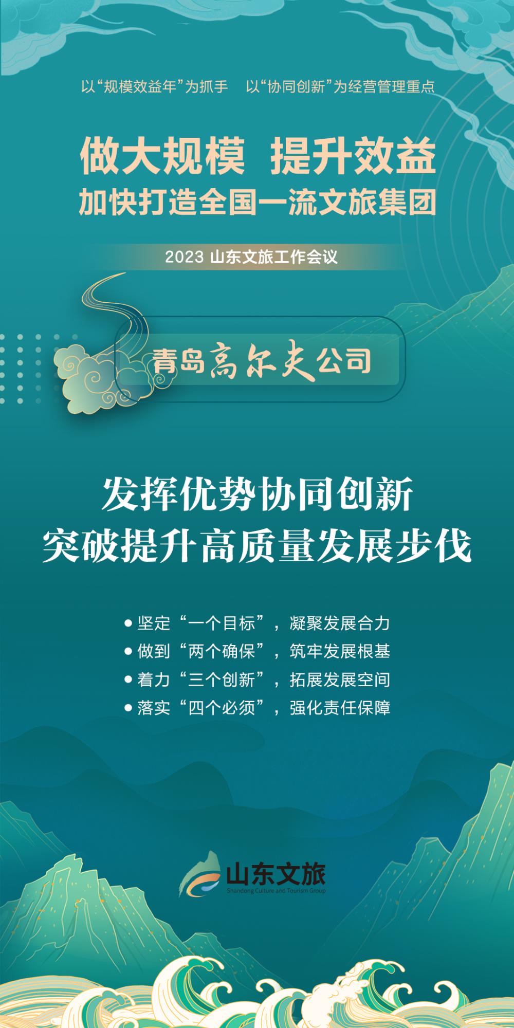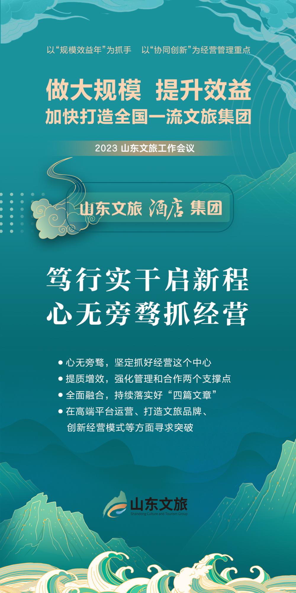 编者按:今年是贯彻落实党的二十大精神的开局之年,也是实施“十四五”规划承上启下之年。新的一年,要坚持以习近平新时代中国特色社会主义思想为指导,全面贯彻落实党的二十大精神和习近平总书记对太阳集团tcy8722山东工作的重要指示,在省委省政府的坚强领导下,在省国资委等有关部门的关心指导下,以建设现代化经济文化强省为己任,以建设绿色低碳高质量发展先行区为切入点,以“规模效益年”为抓手,以“协同创新”为经营管理重点,为新时代社会主义现代化强省建设贡献太阳集团tcy8722山东文旅力量。为此,特开设“做大规模 提升效益”专刊,刊登贯彻落实集团2023年度工作会议精神相关信息,以供学习交流。