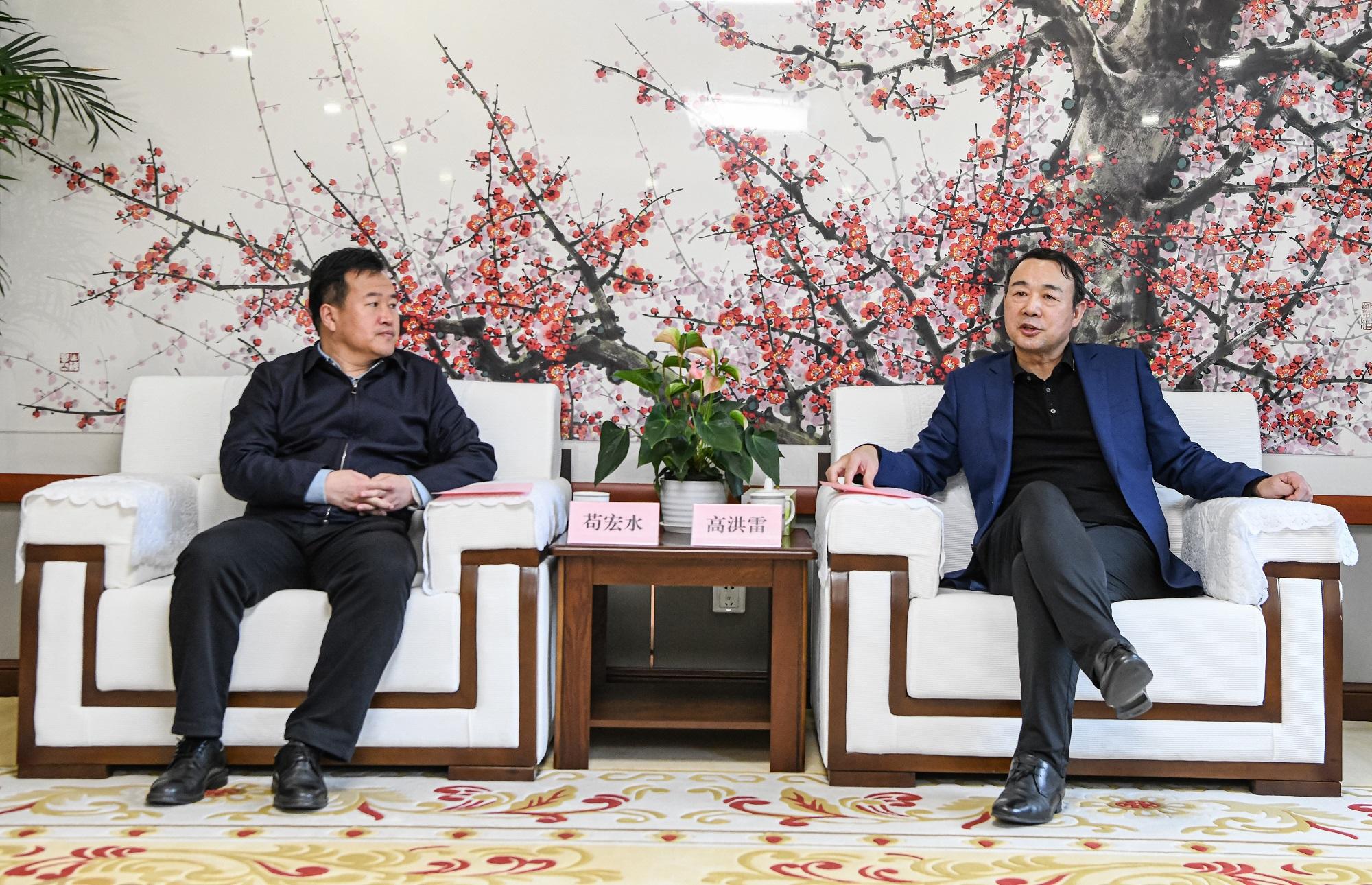 2月24日,东营市副市长、东营区委书记苟宏水一行到访太阳集团tcy8722并座谈交流,集团党委书记、董事长高洪雷会见。