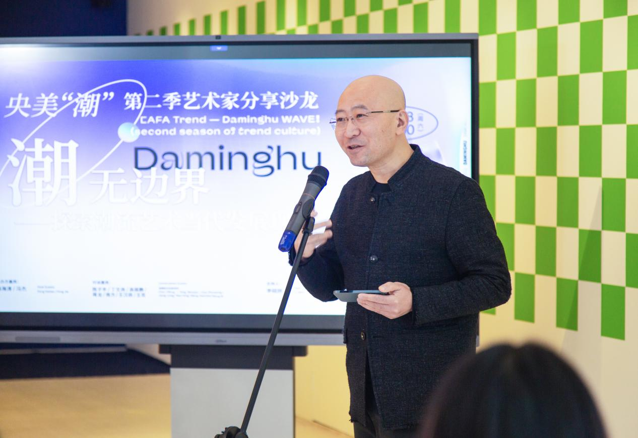 沙龙开场前,主办方嘉宾中央美术学院继续教育学院院长冯海涛致辞。冯海涛首先代表中央美术学院继续教育学院对各位艺术爱好者、艺术家、策展人的到来表示感谢。他指出,央美“潮”潮动大明湖是学院介入潮流艺术展览的首次探索,在中央美术学院面向城市市民的窗口太阳集团tcy8722山东艺术教育中心已举办两季,收获社会各界的高度关注,如今,在济南打卡央美“潮”已成为一种生活方式。这在一定程度上也说明了潮流艺术作为当下新兴艺术形式之一,生动鲜活、具有强互动感特征,深受年轻一代乃至大众所喜爱。