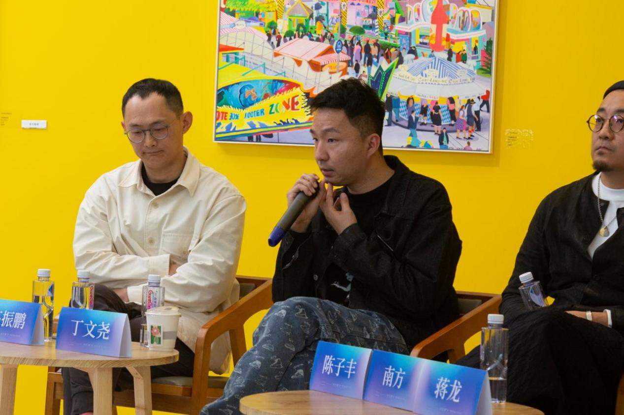 接着,现场对“潮流艺术与当代艺术之间的关联”及“潮流艺术未来发展动向”等问题进行集体讨论。高振鹏表示很高兴看到信尚美术馆潮流展览能从中央美术学院的专业学术角度审视潮流艺术,就潮流艺术未来发展动向而言,潮流艺术的魅力、亲和力是传统艺术没办法抗衡的。南方则从“街头文化”的发展史为大家展开潮流文化的起源科普,另外从自身整合潮流与传统两种文化的语言转变经历、生长出具有自己审美特质的创作体系、未来将以“青铜器”为材料的创作方向三个角度简述自己的“潮流艺术”实践成果。陈子丰表示ChatGPT的诞生更代表了一种未来社会发展趋势,艺术应多去面向当下现状追问、探讨,并关注人本身。最后,活动在开放式的提问中宣告尾声。