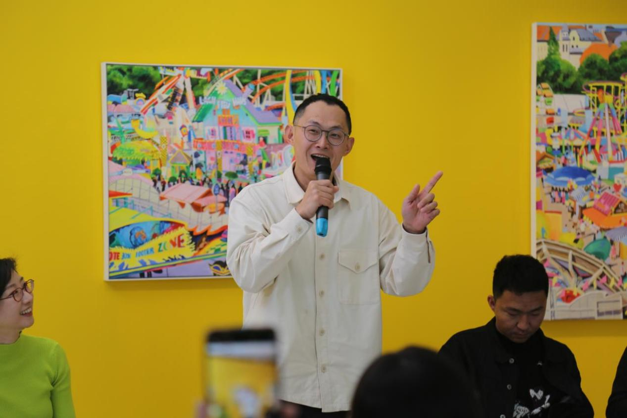 信尚美术馆执行馆长王觅首先代表馆方对艺术家的支持表示感谢,随后表达了对“潮流艺术展在当下诸多展览中位置和现状”的看法:他认为相较于当代艺术家的专业学术反思,潮流艺术家更具有一种破圈影响力。潮流艺术更加注重艺术与大众、商业的关系,成为公众人群与艺术家间的通道。信尚美术馆从2020年潮流文化第一季开始,制造了济南万人打卡的盛状,希望此次展览也能链接济南更多的观众,打卡并形成二次传播,只有传播的意义达到了,展览的意义才能达到。