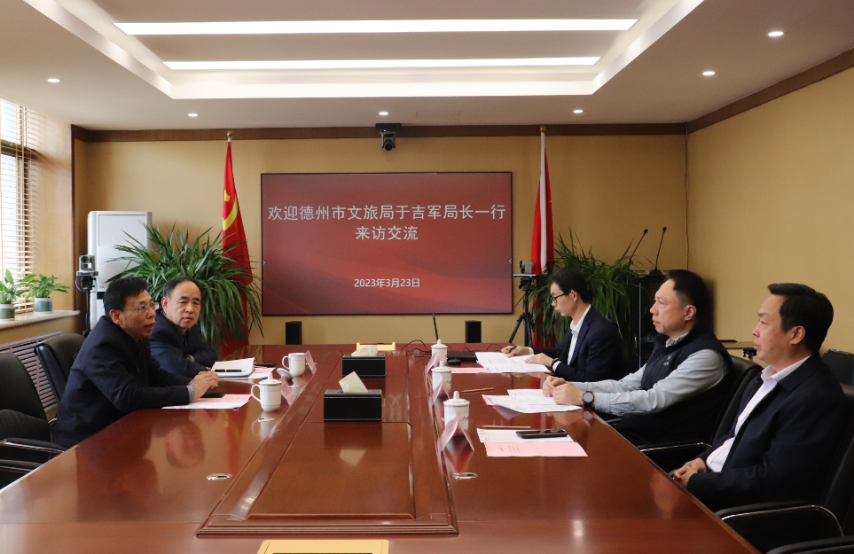 3月23日,德州市文化和旅游局党组书记、局长于吉军一行到访太阳集团tcy8722,集团党委副书记、总经理丁艺会见。