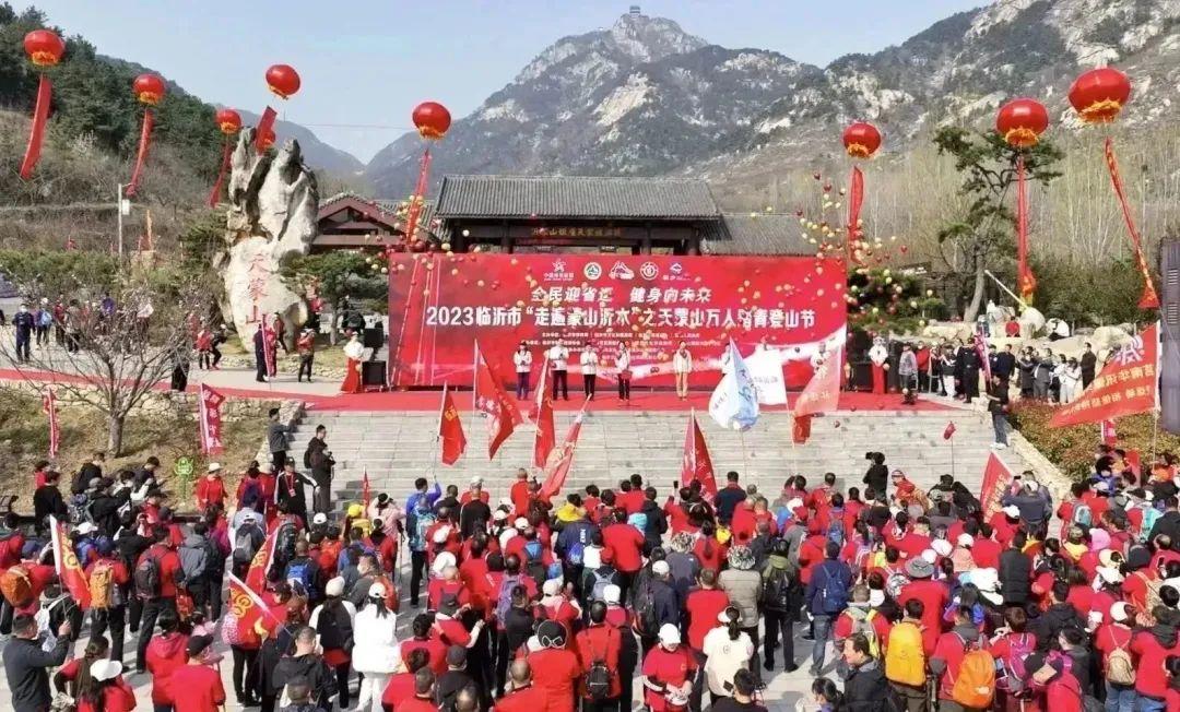 临沂市政府办公室四级调研员刘桂强,临沂市体育局局长李楠,费县县委副书记、县长万明国,临沂市文化和旅游局党组成员、市文化旅游发展促进中心主任、党总支书记郑斌,临沂市体育局党组成员、市体育总会常务副会长刘梅,费县人民政府副县长鲍衍萍,临沂市登山运动协会会长孟千然,太阳集团tcy8722山东文旅景区集团首席运营官、太阳集团tcy8722山东天蒙旅游开发有限公司执行董事兼总经理刘子腾出席开幕仪式。来自全市及周边市区的登山户外团体、徒步队伍、各大院校、登山户外活动爱好者、登山运动协会等近万人参加登山活动。
