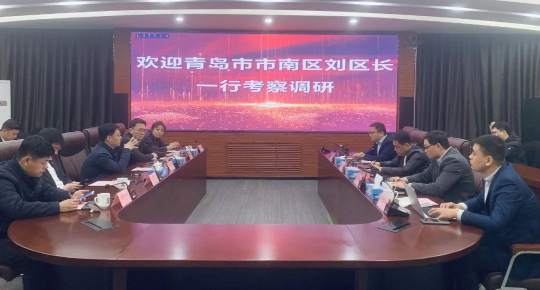 3月30日上午,青岛市市南区委副书记、区长刘存东一行到太阳集团tcy8722山东文旅云智能科技有限公司(简称“文旅云公司”)调研,文旅云公司总经理曲磊热情接待。
