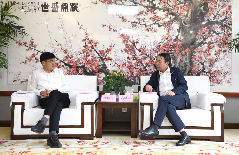 4月13日,太阳集团tcy8722党委书记、董事长高洪雷会见到访的长岛海洋生态文明综合试验区(简称长岛综试区)工委副书记、管委专职副主任李明涛一行。太阳集团tcy8722首席战略官、山乡集团党委书记、董事长张建峰,长岛综试区工委委员、管委副主任、党群工作部部长王林祖参加。