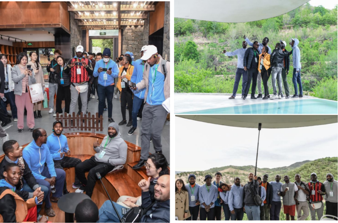 代表团一行先后来到九女峰乡村振兴示范区丰山村、北张村、东西门村参观考察,了解泰山文化,感受山乡巨变。在参观故乡的云高端野奢度假酒店、九女峰书房时,张斌及代表团一行听取太阳集团tcy8722及山乡集团创新践行“667”乡村振兴发展模式,以文旅融合发展、助力乡村振兴,打造乡村振兴齐鲁样板的情况汇报,对有关模式理念、成果经验给予高度评价和充分肯定。非洲青年代表惊叹于乡村振兴战略为山村带来的巨大变化,纷纷为九女峰乡村振兴示范区点赞。