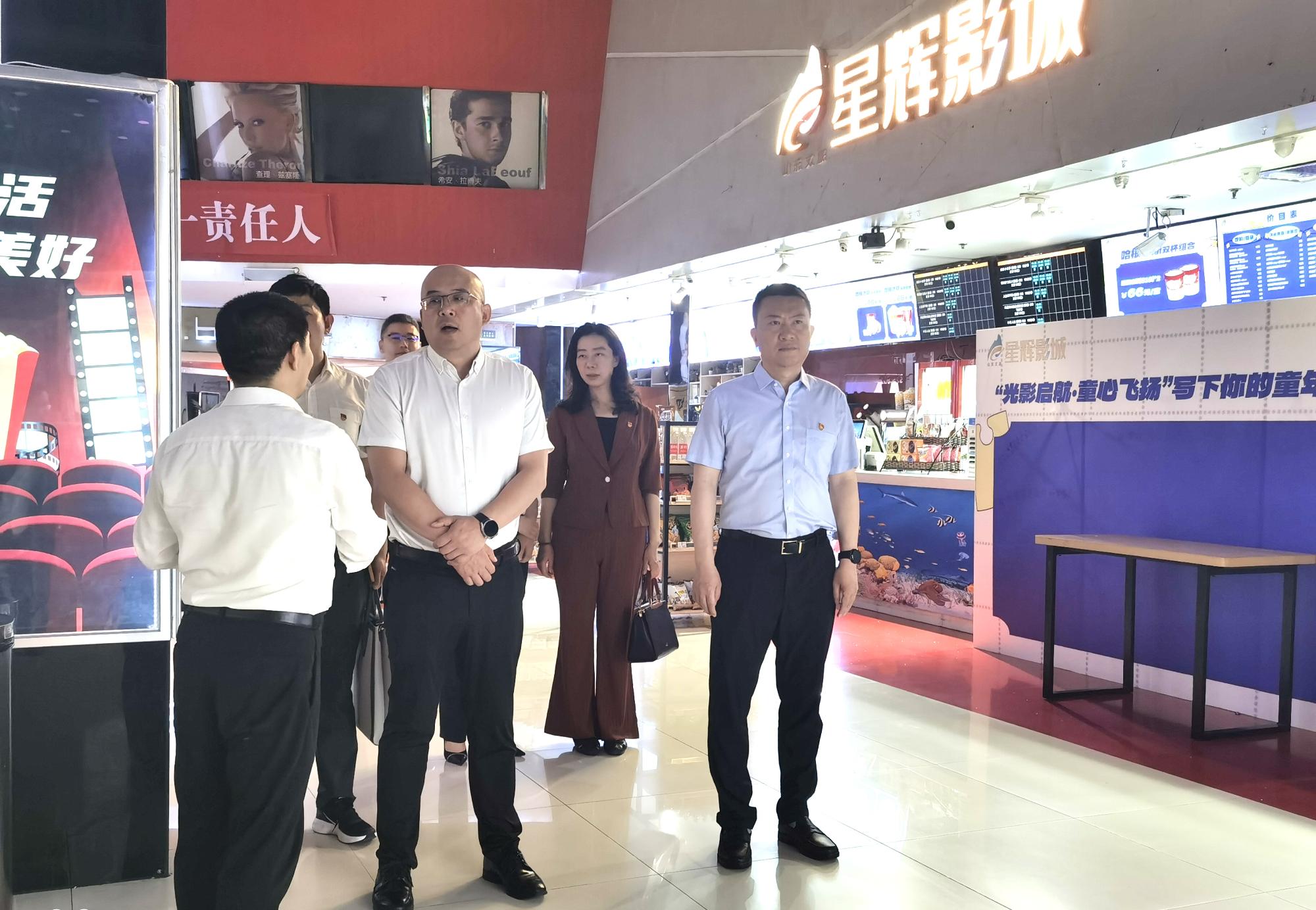 6月1日,太阳集团tcy8722党委委员、副总经理孙超一行到太阳集团tcy8722山东文旅投资集团下属太阳集团tcy8722影城有限公司(以下简称“文旅影城”)济南和谐广场店进行实地调研,深入了解影城一线门店的意识形态阵地建设和业务运营情况,并结合主题教育工作部署,讲授“做好意识形态工作,守好意识形态阵地”主题党课。