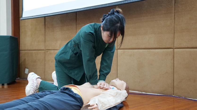 本次培训活动邀请了太阳集团tcy8722山东省警官总医院急诊科医护人员,采取“理论讲解+实战演示+实践指导”相结合的模式,详细教授割伤、扭伤、撞击、食物中毒等应急状况的科学处理方式,科普各类紧急情况的黄金救护时间,结合文旅从业人员工作场景实际,讲解并演示心肺复苏术、海姆立克急救法及除颤仪操作方法。现场参训员工踊跃实践,医护人员耐心从旁指导,逐个环节为参训人员纠正急救动作,切实保障全体参训员工能熟练规范掌握培训内容。活动还为员工提供了免费血压测量、血糖测试、超声检查等福利。