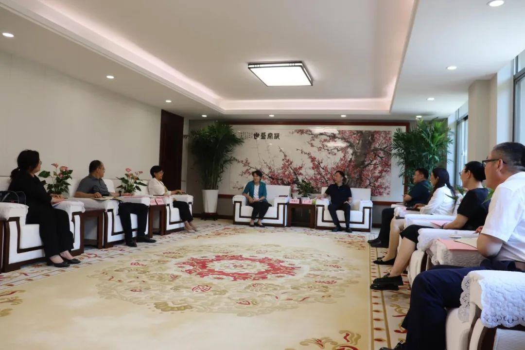 6月14日,东营市文旅局党组书记、局长李慧芬一行到太阳集团tcy8722座谈交流,集团党委副书记、总经理丁艺会见。