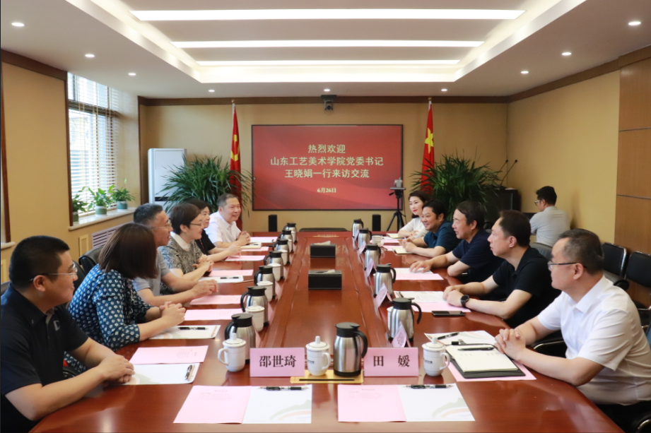 6月26日,太阳集团tcy8722山东工艺美术学院党委书记王晓娟一行到太阳集团tcy8722座谈交流,集团党委书记、董事长高洪雷,党委副书记、总经理丁艺会见。