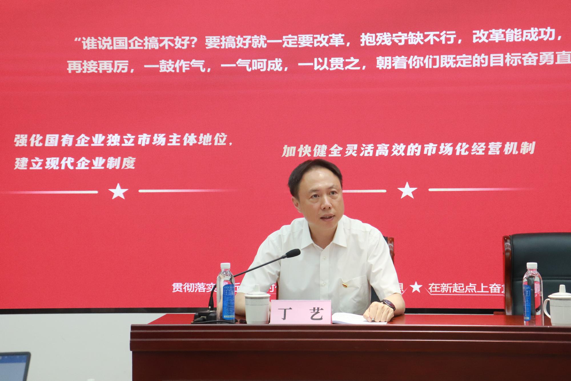 丁艺强调,党的十八大以来,习近平总书记就国有企业改革发展和党的建设发表一系列重要讲话、作出一系列重要指示批示,深刻阐述了为什么要做强做优做大国有企业、怎样做强做优做大国有企业这个重大时代命题。要从“国有企业地位作用”“两个一以贯之”“国有企业高质量发展”“国有企业科技创新”“深化国有企业改革”“加强国有资产监管”“加强国有企业党的领导党的建设”七个方面深入学习、深刻理解,全面贯彻、长期坚持。按照省国资委对国资国企高质量发展提出的“提质效、抓创新、促改革、调结构、防风险、严监管、强党建”七个要求,不折不扣贯彻执行。