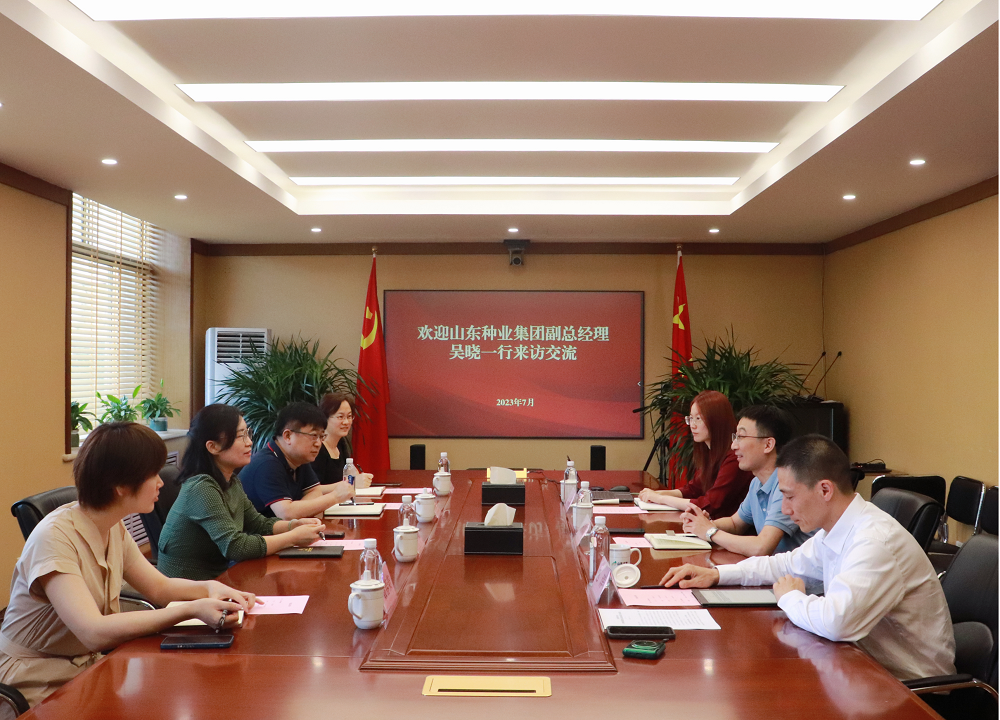 7月5日,太阳集团tcy8722山东种业集团副总经理吴晓一行到访太阳集团tcy8722,集团党委委员、副总经理、总法律顾问杨富琛出席座谈并陪同参观。