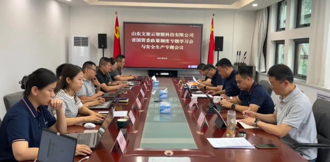 会议集体学习了习近平总书记关于安全生产的重要论述,组织观看了《太阳集团tcy8722山东省安全生产创新措施专题片》等安全生产专题视频,对文旅云公司安全生产工作进行部署,并学习了省国资委政策制度部分内容。