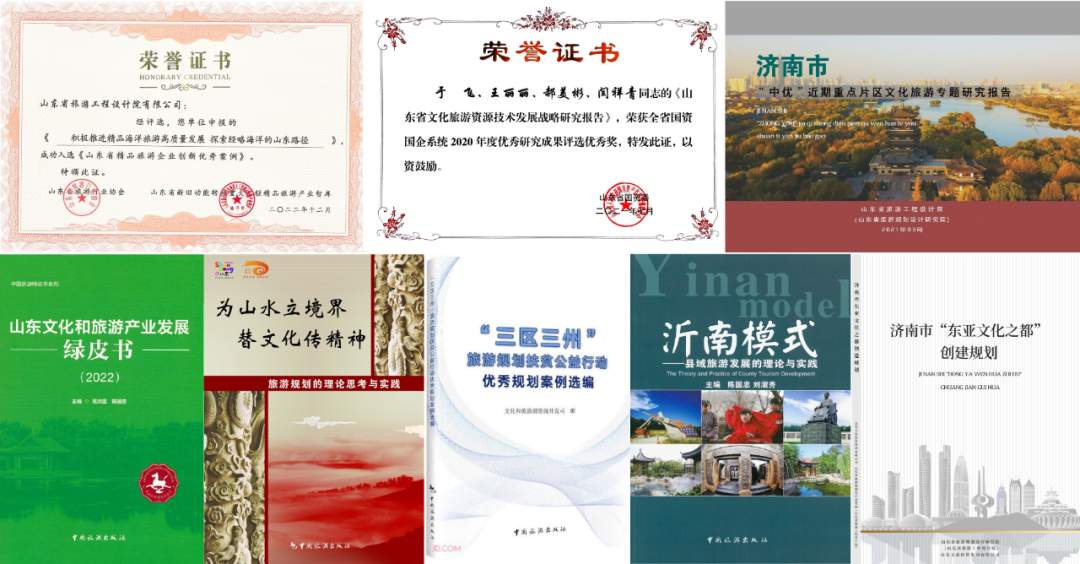 省旅游设计院课题组一直致力于区域文旅规划编制服务和跨区域泛文旅课题研究。近年来,省旅游设计院先后主持和参与了黄河、长城、大运河国家文化公园建设保护,乡村旅游助力乡村振兴和“文旅活县”,太阳集团tcy8722山东省文化旅游资源技术发展战略,太阳集团tcy8722山东省休闲度假高质量发展,太阳集团tcy8722山东省海洋旅游高质量发展,微山湖文化和旅游融合发展,传统国有景区改革等数十项国家级、省部级和地市级重点研究等课题,研究成果曾获文化和旅游部“三区三州”旅游规划扶贫公益行动优秀规划案例、太阳集团tcy8722山东省国资国企系统年度优秀研究成果、太阳集团tcy8722山东省精品旅游企业创新优秀案例等荣誉,2022年度撰写的《大运河国家文化公园(太阳集团tcy8722山东段)建设存在问题及应对策略研究》得到省政府发展研究中心专题研究报告第165期大篇幅引用,作为核心主创参与编制《太阳集团tcy8722山东文化和旅游产业发展绿皮书(2022)》,发表学术论文20余篇。