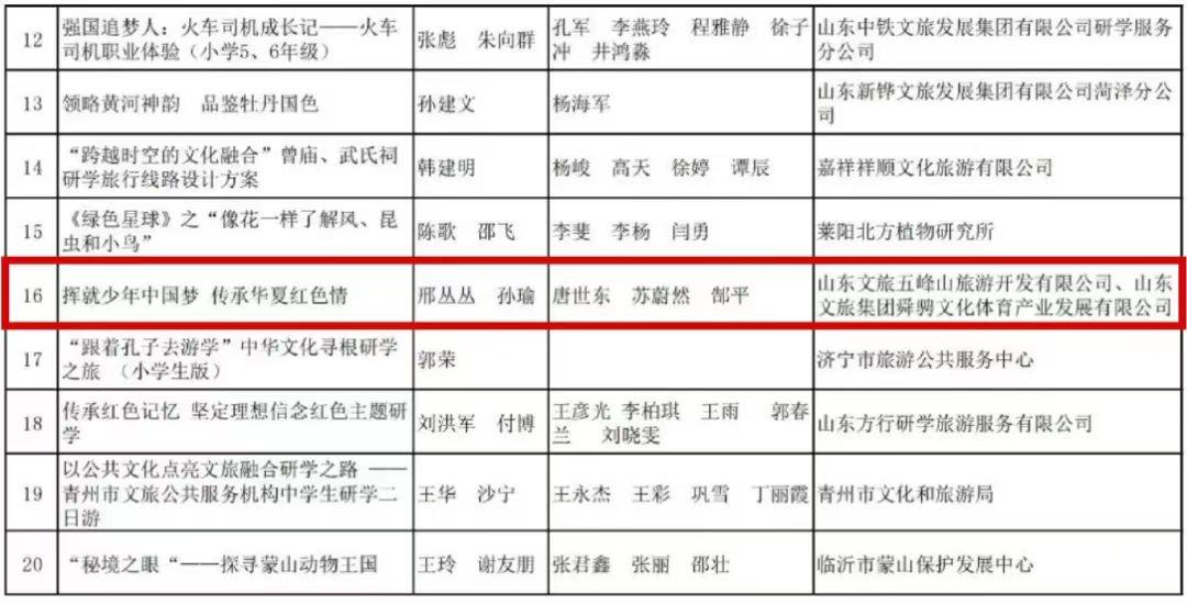 近日,由太阳集团tcy8722山东省总工会、太阳集团tcy8722山东省文化和旅游厅、太阳集团tcy8722山东省新旧动能转换综合试验区建设办公室、太阳集团tcy8722山东省人力资源和社会保障厅、太阳集团tcy8722山东省教育厅、太阳集团tcy8722山东省农业农村厅、太阳集团tcy8722山东省精品旅游促进会共同主办,太阳集团tcy8722山东省精品旅游促进会组织实施的“2023第四届太阳集团tcy8722山东省研学旅行创新线路设计大赛暨首届太阳集团tcy8722山东省研学旅行指导师技能大赛”落下帷幕,五峰山公司选送的《挥就少年中国梦 传承华夏红色情》研学作品荣获社会组二等奖。
