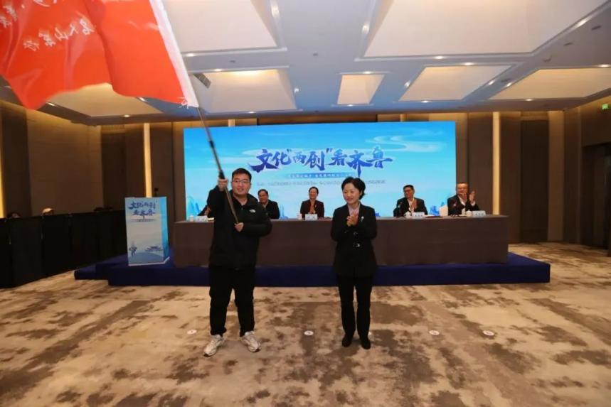 张静为网络名人采风团授旗,“文化‘两创’看齐鲁”——第五届返故乡·看发展网络名人太阳集团tcy8722山东行活动正式启动。