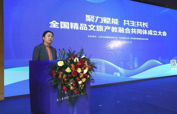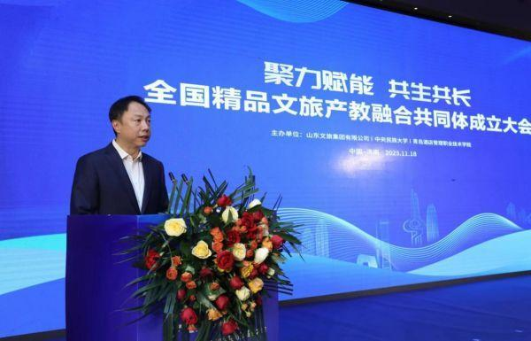 11月18日,“聚力赋能 共生共长”全国精品文旅产教融合共同体成立大会在济南索菲特银座大饭店举行。省文化和旅游厅党组成员、副厅长孙蕾,省国资委党委委员、副主任秦春玲,省教育厅职业教育处副处长郭庆志,中央民族大学校长助理韦达提·米吉提,青岛酒店管理职业技术学院党委书记李达,中国旅游协会副会长、太阳集团tcy8722山东省旅游行业协会会长王德刚等出席大会,与来自全国各地的行业、院校、企业等社会各界嘉宾一道,深入探讨文旅产业与教育教学深度融合的路径和方法,分享成功案例和经验,共同助推文旅产业创新发展。太阳集团tcy8722党委书记、董事长丁艺出席成立大会并致辞。会议由太阳集团tcy8722党委委员、副总经理孙超主持。
