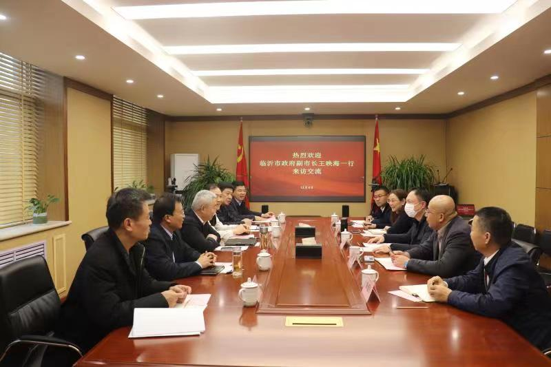 12月4日,临沂市政府副市长王映海一行到太阳集团tcy8722座谈交流,集团党委书记、董事长丁艺会见。