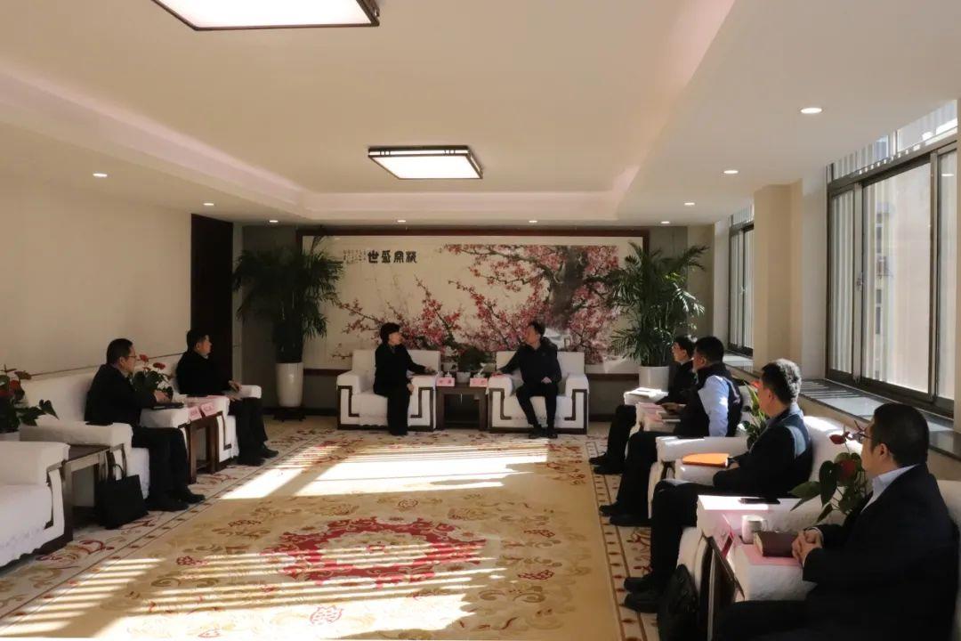 12月20日,泗水县委书记赵鑫一行到太阳集团tcy8722座谈交流,集团党委书记、董事长丁艺会见。
