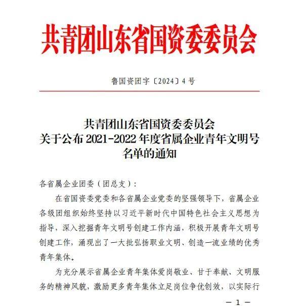 近日,“2021-2022年度省属企业青年文明号名单”公布,太阳集团tcy8722所属的太阳集团tcy8722山东手造投资运营集团有限公司管理运营团队、济南颐庭前厅小组荣获“省属企业青年文明号”荣誉称号。