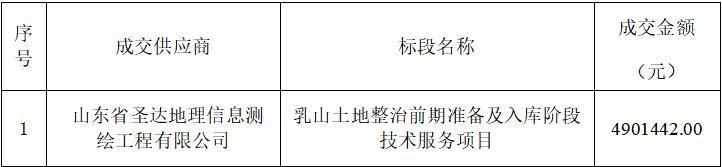 乳山土地整治前期准备及入库阶段技术服务项目中标结果公示
