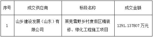 一、项目名称: 莱芜雪野乡村度假区精装修、绿化工程施工项目