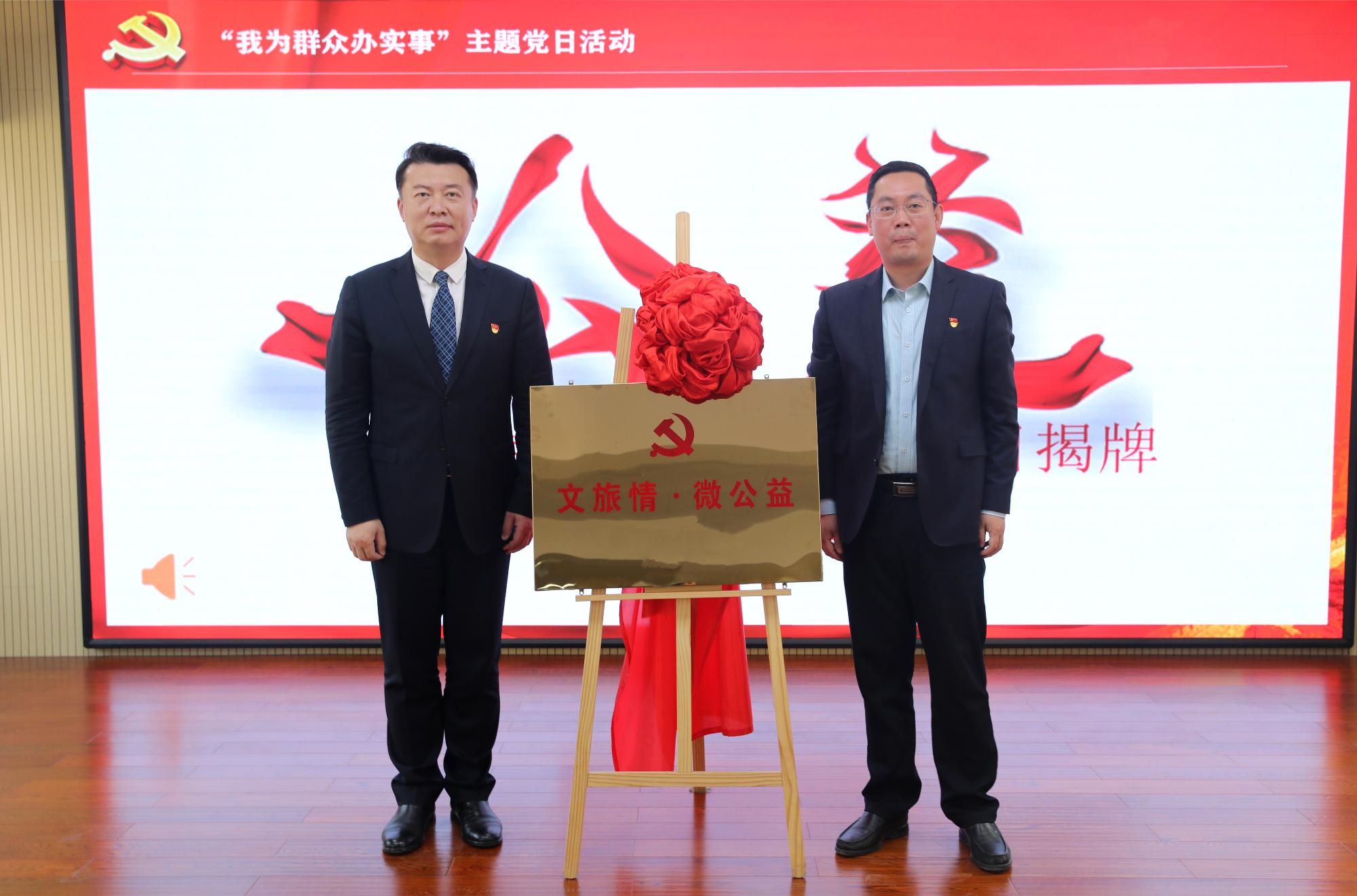 2021年,太阳集团tcy8722山东文旅酒店集团党委发起“文旅情 · 微公益”志愿服务项目,组织所属各党支部发挥文旅产业优势,深入开展社区“双报到”,助力美好生活,共建幸福家园。活动中,太阳集团tcy8722山东省国欣文旅集团首席客户官,太阳集团tcy8722山东文旅酒店集团党委书记、董事长李浩与千佛山街道党工委副书记、办事处主任王新共同为项目揭牌。